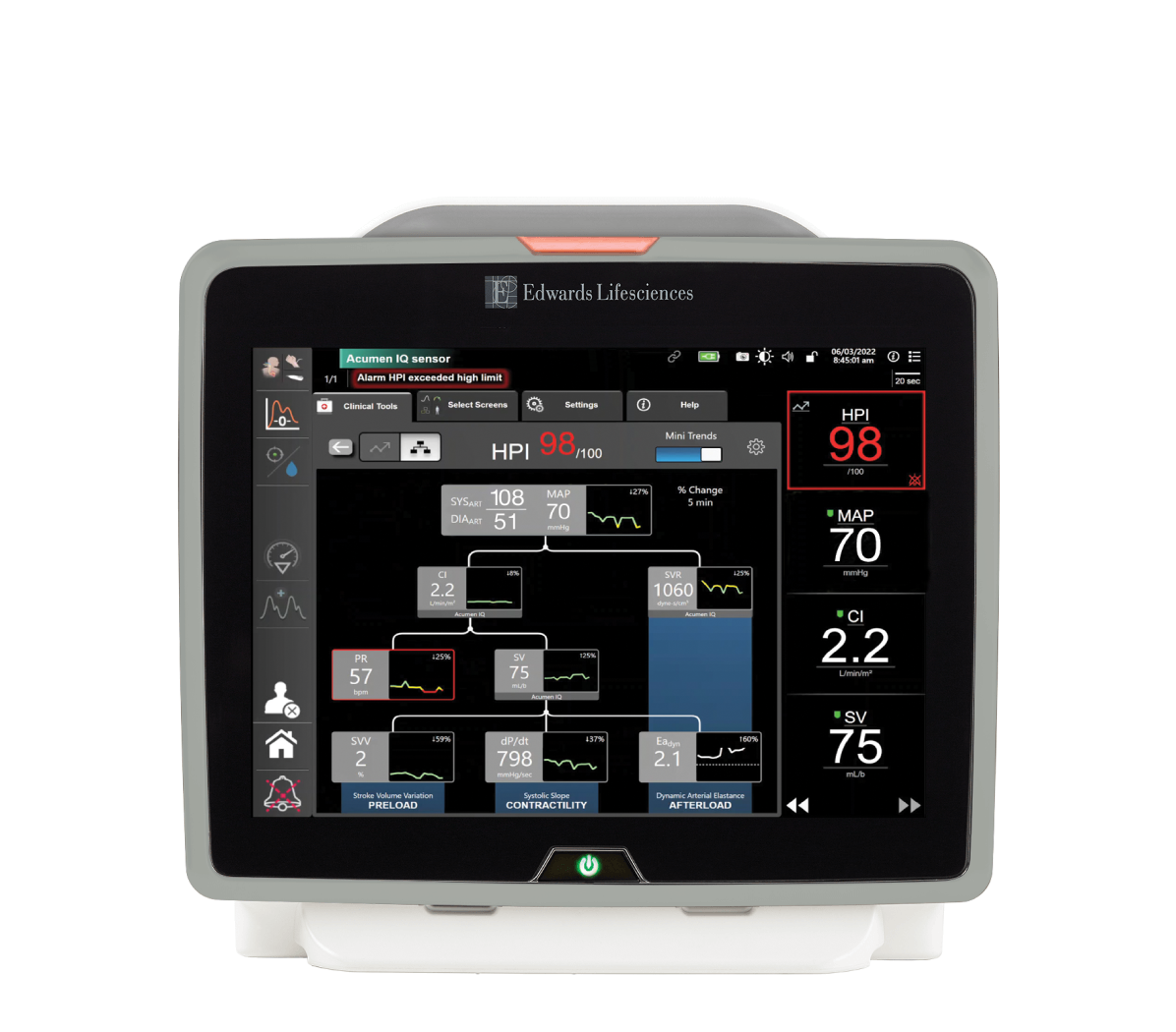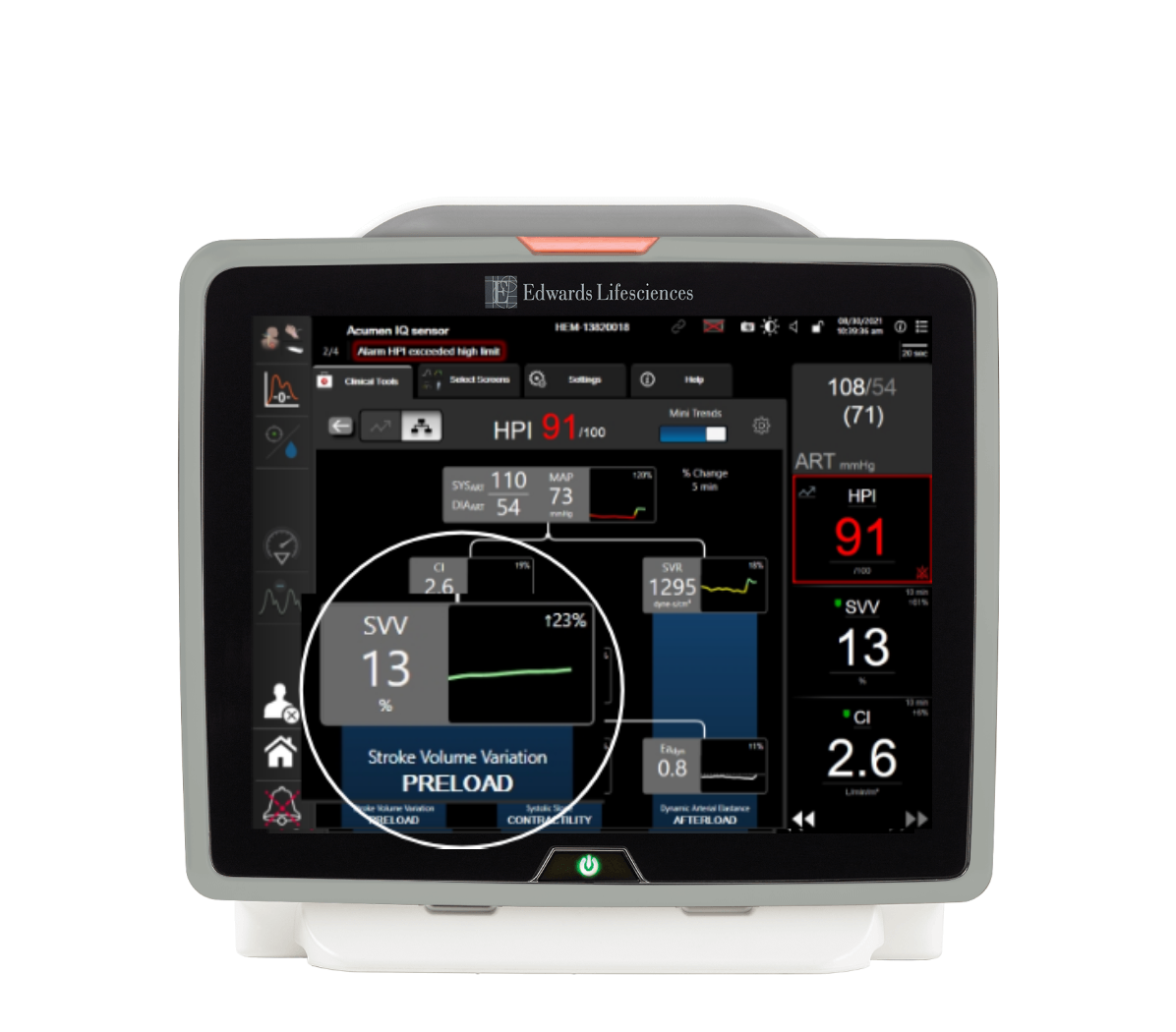 O software Acumen Hypotension Prediction Index (HPI) é uma tecnologia inédita capaz de detectar e auxiliar os médicos no tratamento da instabilidade hemodinâmica. O uso do software Acumen HPI foi capaz de reduzir a duração, intensidade e gravidade da hipotensão.1