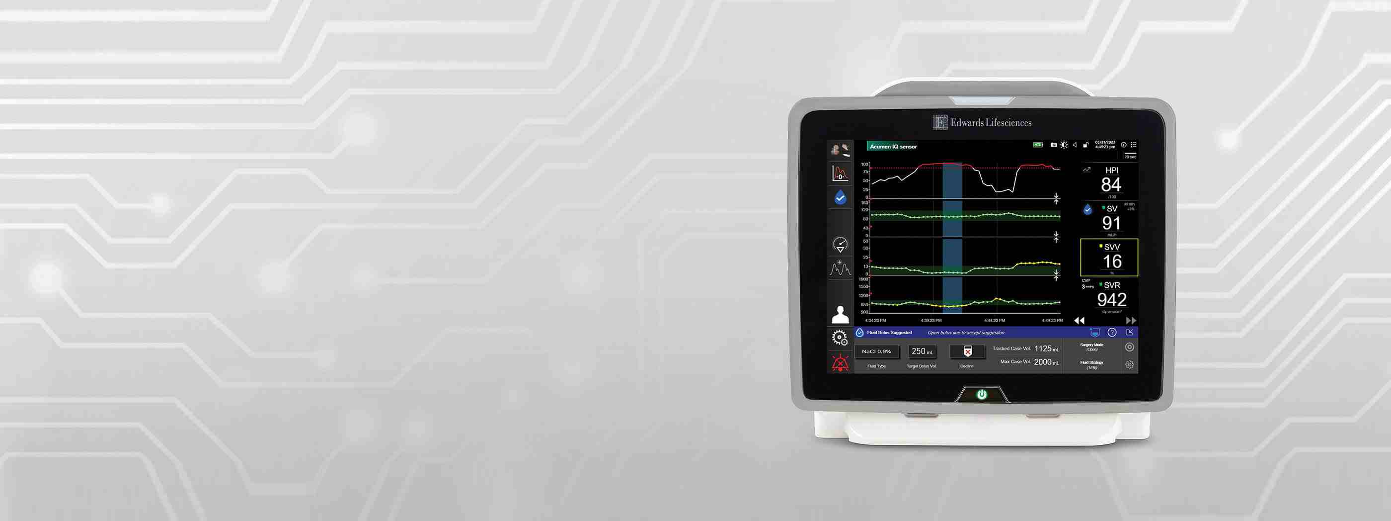 Com acesso a monitorização hemodinâmica avançada que fornece parâmetros contínuos de pressão e fluxo, você obtém informações valiosas sobre a adequação da perfusão — tudo exibido no monitor HemoSphere.