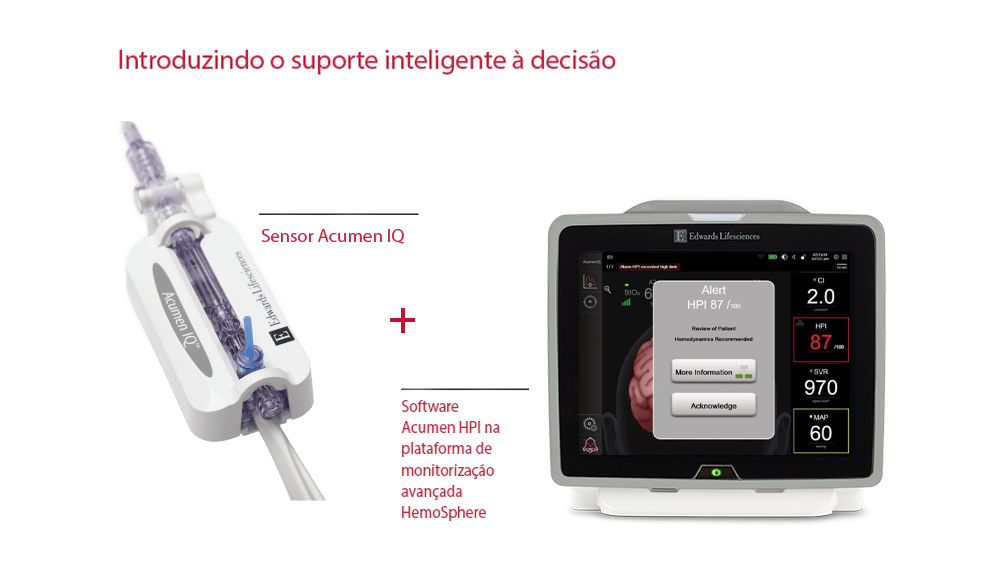 Acumen IQ é um sensor hemodinâmico minimamente invasivo, através do qual é possível habilitar a função preditiva de hipotensão, do software Acumen Hypotension Prediction Index (HPI). Foi desenvolvida com base no algoritmo Edwards de Débito Cardíaco, baseado na pressão arterial (APCO).