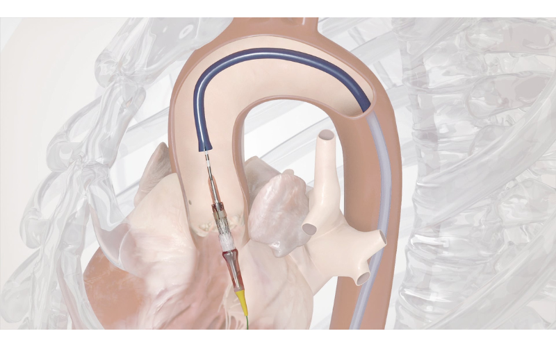カテーテルでエドワーズ サピエン3を心臓弁まで運んでいるイラスト