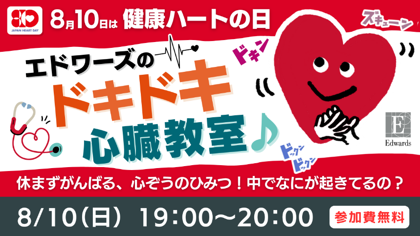 8/10は健康ハートの日!エドワーズのドキドキ心臓教室♪エドワーズライフサイエンス、心臓について楽しく学べるオンライン授業を開催